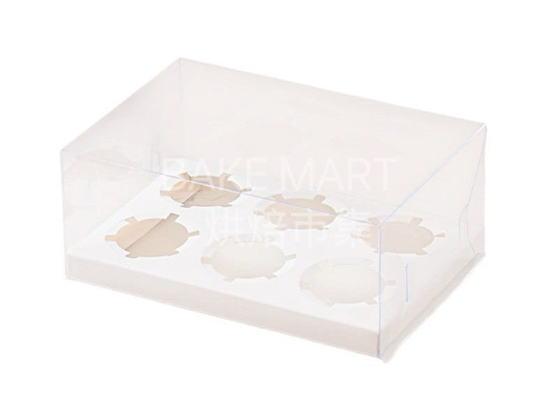 透明6個裝紙杯蛋糕盒-連白色托底 Transparent Cupcake Box with Card Board